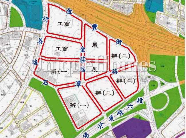 (三)內湖區潭美段五小段金豐街、行善路及南京東路六段所圍範圍內「辦公服務區(一)」、辦公服務區(二)」「工商混合區」及「工商服務展售區」